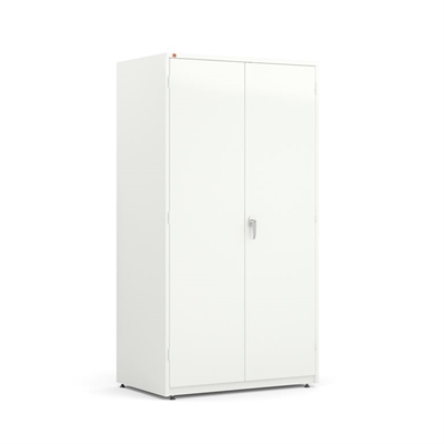 Ekstra stort og kraftigt opbevaringsskab af pladestål. Skabet leveres med fire justerbare hylder, justerbare fødder, drejehåndtag og 3-punktslås med to nøgler.
